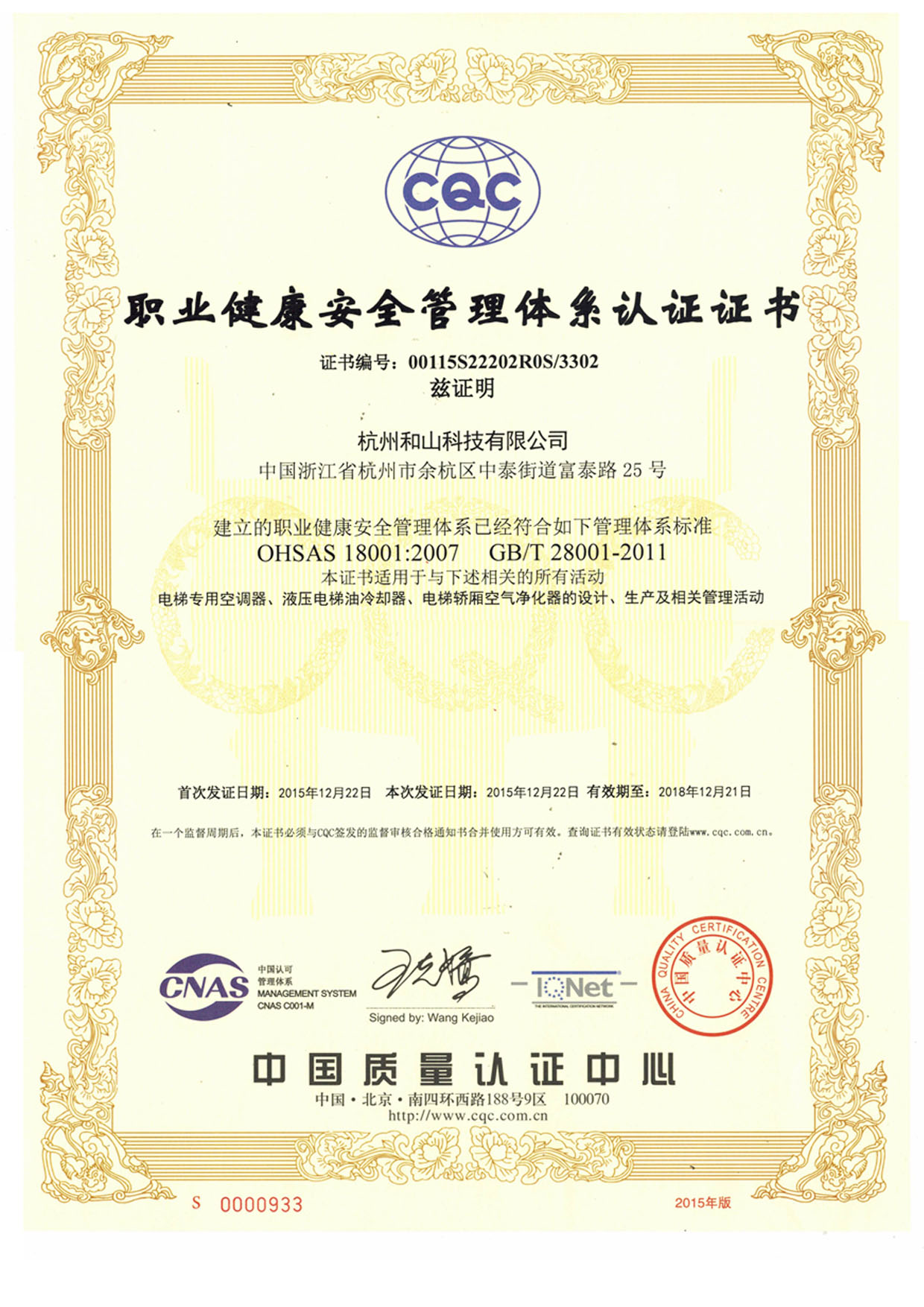 OHSAS18001 Occupation Healthy Safety Management System Certification